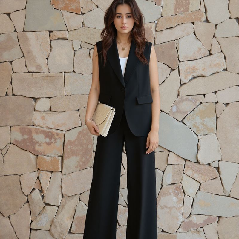 ✔️ Colete Estruturado sem Mangas: Modelagem precisa que acintura visualmente sem apertar, permitindo composições sofisticadas com ou sem camisa por baixo.